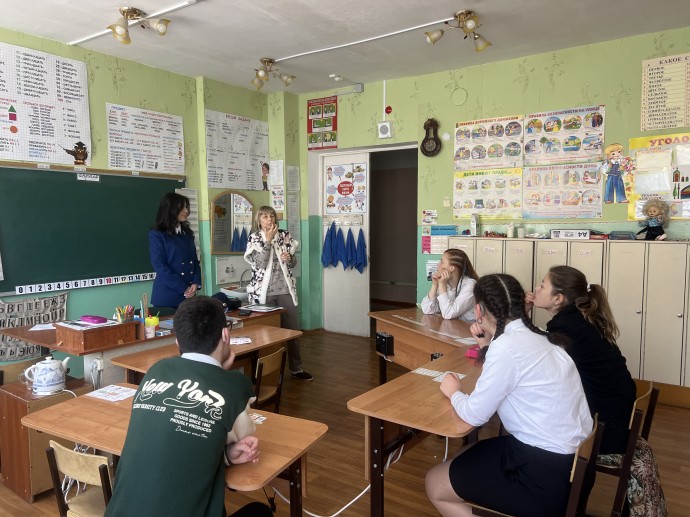 В школе обучаются дети с нарушениями слуха и речи. Волонтеры пообщались с ребятами с помощью сурдоперевода, а также подарили канцелярские товары и спортивный инвентарь.